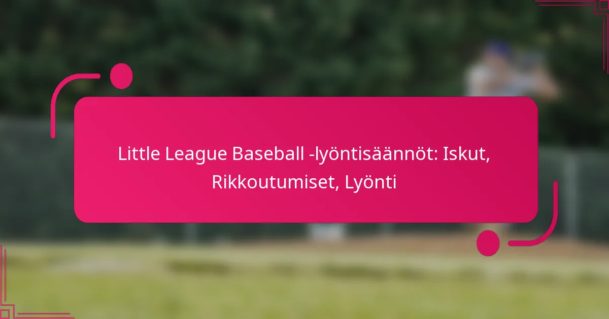 Pienessä liigassa baseballin lyöntisääntöjen ymmärtäminen on olennaista sekä pelaajille että valmentajille, sillä ne säätelevät pelin keskeisiä osa-alueita. Lyöntejä kutsutaan, kun lyöjä lyö ja epäonnistuu tai ei lyö syöttöä, joka on lyöntivyöhykkeellä, kun taas rajaheitot voivat vaikuttaa lyöntilaskentaan ja strategiaan. Lisäksi lyönti tarjoaa taktisen vaihtoehdon juoksijoiden edistämiseen, mutta siihen liittyy erityisiä sääntöjä, jotka varmistavat reiluuden ja turvallisuuden kentällä.