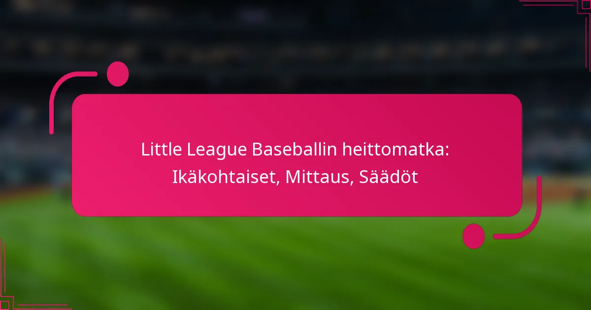 Little League Baseball määrittelee erityiset heittomatkat, jotka vaihtelevat iän mukaan, varmistaen turvallisen ja haastavan ympäristön nuorille pelaajille. Nämä ikäkohtaiset mittaukset on suunniteltu tukemaan reilua peliä ja taitojen kehittämistä, jolloin urheilijat voivat suoriutua tehokkaasti samalla kun loukkaantumisriski vähenee.