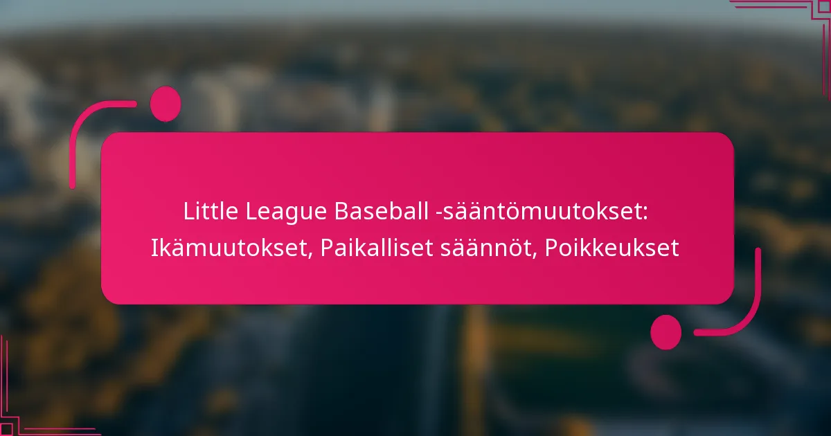 Ikämuutokset, paikalliset säännöt ja poikkeukset Little League Baseballissa vaikuttavat merkittävästi pelaajien kelpoisuuteen ja osallistumiseen. Ymmärtäminen siitä, kuinka nämä elementit vaikuttavat toisiinsa, on ratkaisevan tärkeää valmentajille, vanhemmille ja pelaajille, jotta he voivat navigoida liigassa tehokkaasti.