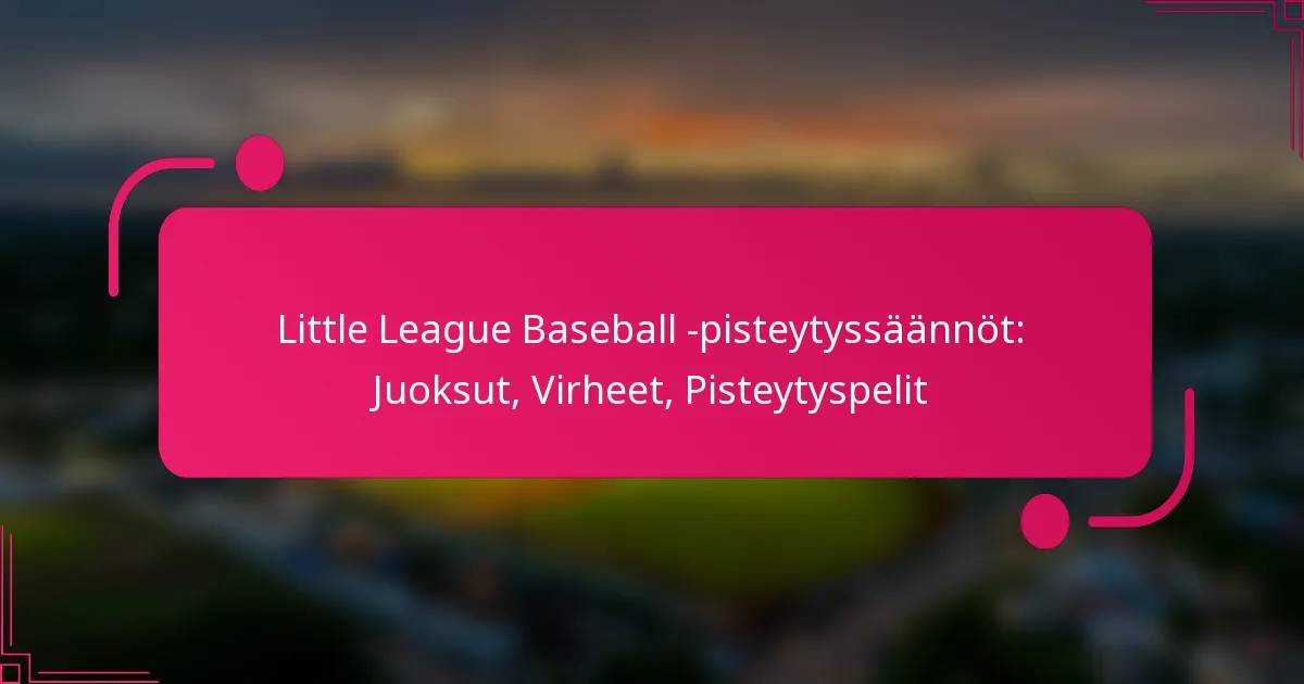 Pienessä liigassa baseballin pisteytyssääntöjen ymmärtäminen on ratkaisevan tärkeää pelaajille, valmentajille ja katsojille. Juoksu merkitään, kun pelaaja onnistuneesti koskettaa kaikkia pelipaikkoja ja saavuttaa kotipesän, kun taas virheet voivat merkittävästi vaikuttaa pelin lopputulokseen sallimalla pelaajien edetä tai saavuttaa pelipaikka. Lisäksi pisteytyspelit dokumentoidaan huolellisesti, jotta pelin tarkka seuranta ja analysointi voidaan varmistaa, mikä parantaa kokemusta kaikille osapuolille.